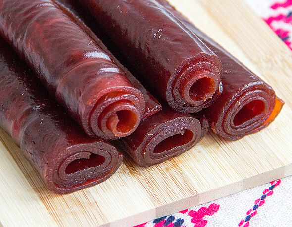 Сушити в розігрітій до 70 °С духовці близько 8 год. Можна сушити три дні у теплому місці або спершу підсушити 3–4 год у духовці, а потім досушувати 2–3 дні у теплому місці, на сонці. Нарізати смужками, згорнути рулетиками. Для тривалого зберігання скласти в банку, пересипаючи цукровою пудрою або цукром, і щільно закрити. Відкриту банку зберігати в холодильнику.