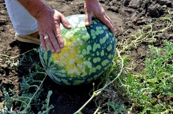 Це пляма утворюється в місці контакту кавуна з землею, і якщо вона є, значить, кавун встиг дозріти на грядці. Колір плями повинен бути насичено-жовтим або (ще краще) темно-оранжевим, але не білим!
