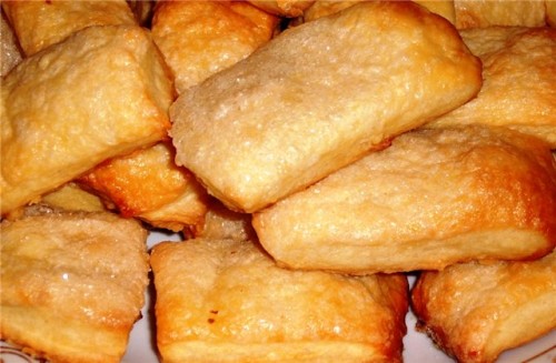 Знадобиться: 250г маргарину для випічки або вершкового масла, 200г сметани, 4 склянки борошна вищого сорту, 2 яйця, 1 1/3 склянки цукру,? ч.л. соди, оцет для гасіння соди.