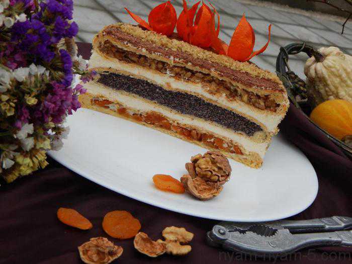 -до 1 -го коржа - 1 білок збити з 2 ст л цукру + 100 гр кураги (порізати соломкою)