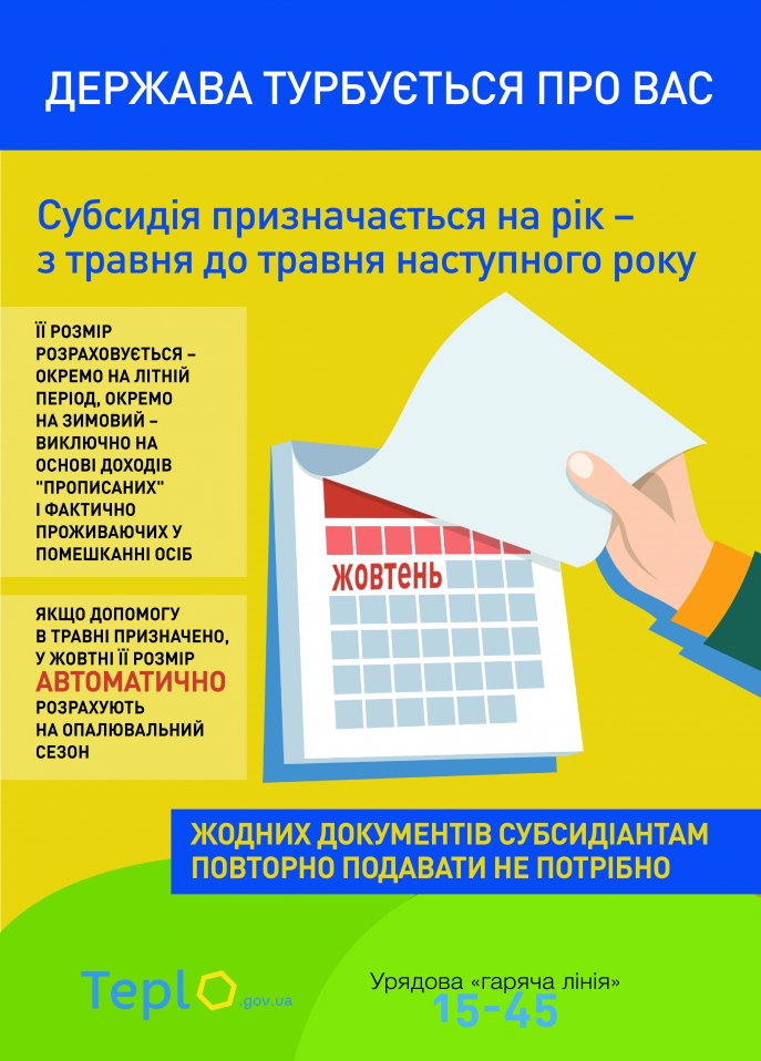 В Україні офіційно розпочався процес розрахунку розміру зимової субсидії. У жовтні управління соціального захисту населення автоматично розрахують розмір допомоги на опалювальний сезон усім тих, кому у травні цього року субсидію було перепризначено на новий період – 2017- 2018рр.