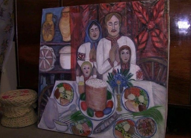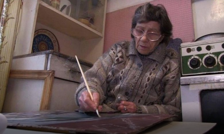 Олені Рибальченко 88 років. Хоч в роду були художники, сама за пензля взялася вже на пенсії. Талант відкрився випадково: під час ремонту у квартирі не було чим заклеїти кострубату стіну і господиня вирішила її замалювати – вийшла справжня картина. Далі були полотно, фанера, ДСП – все, що, потрапляючи під руку, піддавалося масляним фарбам.