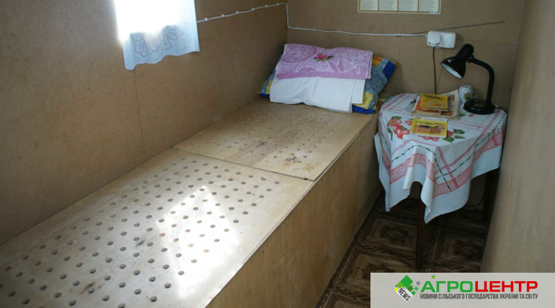Всередині будиночок облаштований скромно. Одна лежанка із простого листа фанери із отворами. Якщо його підняти, видно, два вулики, повітря з яких і наповнює будиночок. Власне, у цьому і є вся технологія. Аромат всередині надзвичайно приємний. Він схожий на суміш меду та хвої.