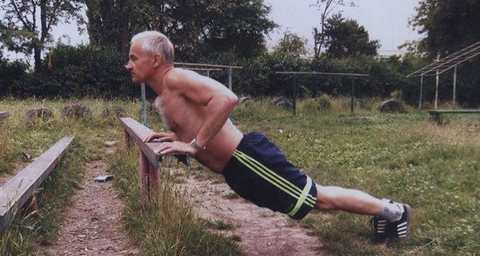 Тепер Володимир Сидорня щодня обов'язково присiдає, тренує черевний прес i вiдтискається вiд пiдлоги чи на брусах. Цi три вправи, як пересвiдчився вiн на практицi, фундамент нашого здоров'я. А решта мають, так би мовити, другорядне значення. "Як ви вважаєте, що допомагає серцю активнiше перекачувати кров? - запитує пенсiонер. - Так, м'язи. Якщо вони регулярно працюють, головному двигуну органiзму легше. У людини приблизно 600 м'язiв, 400 суглобiв i майже 100 кiлометрiв судин. Це величезна структура, яку треба пiдтримувати у функцiональному станi. Що для цього я роблю? Присiдаю: десять пiдходiв по десять разiв. Ноги - на ширинi плечей, а зад вiдтягуйте так, наче сiдаєте на стiлець. Тодi задiюється саме група нижнiх м'язiв стегна, якi допомагають серцю пiдтримувати кровообiг. Перерва мiж вправами - секунд двадцять. Звичайно, для нетренованих навантаження має бути дозованим. Друга вправа - для черевного пресу. Коли ми качаємо його м'язи, водночас тренуємо м'язовий корсет спини, напружуємо i руки, i шию, i ноги. А це своєрiдна профiлактика остеохондрозу, гриж. Тобто такий собi цiлющий бальзам для хребта. Хiба це важко робити? Нi".