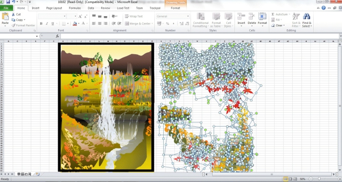 Тацуо Хоріучі – 76-річний японський пенсіонер. Він давно хотів навчитися малювати на комп’ютері, але через високу ціну не міг дозволити собі купити графічний редактор. І тоді він почав малювати в електронних таблицях. Виходять у нього справжні шедеври!