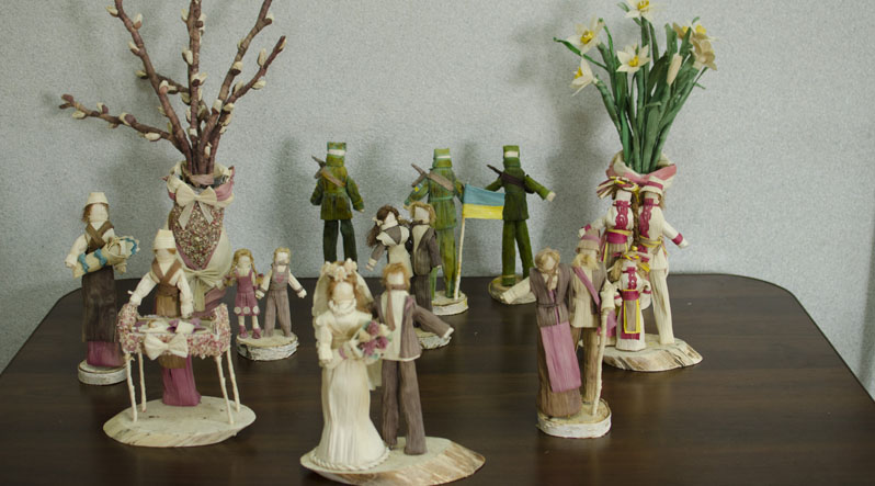 – Останнім часом у мене з’явилося чимало патріотичних ідей і я почала робити воїнів-героїв із синьо-жовтими прапорами та автоматами, а також їхніх дружин – матерів із дитятами над люльками, старих жінок, що чекають синів із війни. Виготовляю також самобутні експонати під старовину – водяні та повітряні млини, хатини з тином і колодязем, кузні з ковалями, лісорубів із сокирами, – ділиться думками умілиця.