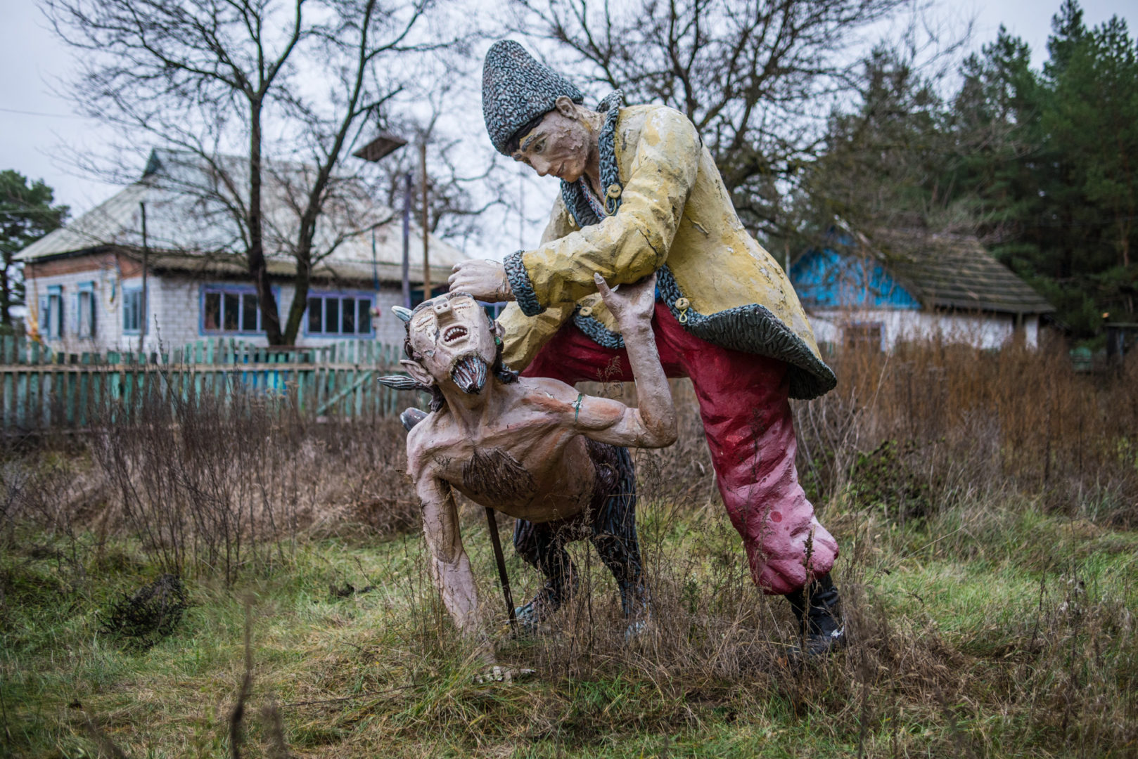 Біля таблички із написом «Панасівка» майорить український прапор. Для гостей села це орієнтир — тут мешкає скульптор і художник Валерій Єрмаков. Він невідомий навіть у вузьких колах, але й сам зізнається, що популярним стати ніколи не прагнув. У непримітній хатині, де все зроблено власними руками, після смерті дружини живе сам. Подвір’я Валерія не сплутаєш з жодним іншим — там скульптор розмістив власні творіння, створивши своєрідну галерею просто неба.