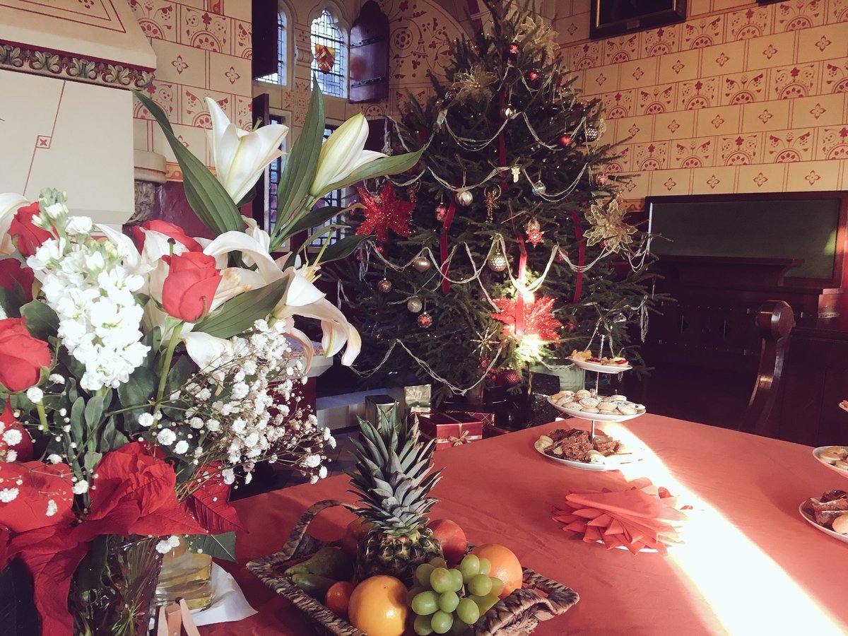 Після церкви королівська сім'я повертається в Сандрінгем-хаус на обід зі святковою індичкою та інші торжества. Шеф-кухар разом з його підлеглими відрізає перший шматок від двох індичок, і подає його королеві. «В кінці розрізання, це єдиний час року, коли вона подає напій шеф-кухарю, і він вітає сім'ю словами «Щасливого Різдва», - сказав МакГрейд.