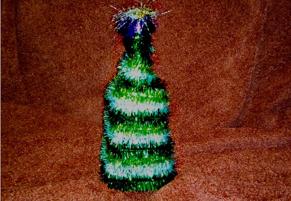 “Дощик” кріпиться на пляшку за допомогою двостороннього скотчу. Також таку ялинку можна використати як сховок.