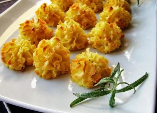 Інгредієнти на 6 порцій: 1 кг очищеної картоплі; 50 г твердого сиру; 2 жовтки; мускатний горіх на кінчику ножа; перець і сіль.