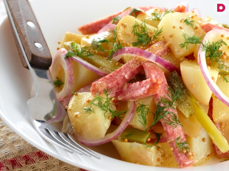 Цей салат у Німеччині, незважаючи на ситність, їдять як гарнір. Часто німці воліють вживати салат підігрітим і политим бульйоном. Готувати страву потрібно виключно з «воскової» картоплі, тобто тієї, яка не розварюється.