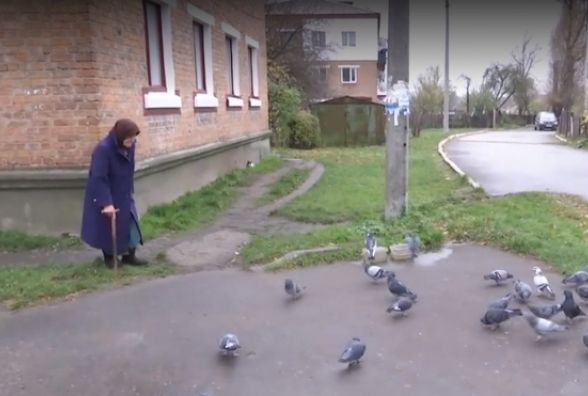 Як зазначають у сюжеті ТСН, "пташниця" опікується усіма міськими голубами. Жінка годує їх та розмовляє з ними. "Годувальниці" уже пішов 96-й рік.