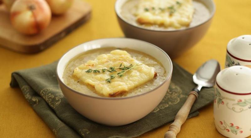 Цю страву їли ще римські легіонери. Для приготування юшки використовувався лише цибулю. Страву вважали ідеальною для солдата: дешево, швидко, ситно. За іншою версією, цей суп вигадав Людовик XV. Опинившись на полюванні без вечері, він чи то сам, чи то з допомогою кухаря, він обсмажив цибулю, залив її шампанським і з'їв. Французи жартують, що це, мабуть, найкраще, що зробив Людовик XV.