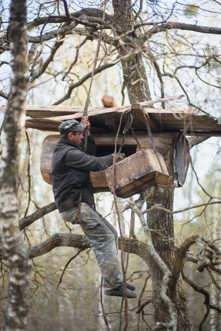 Тетяна часто допомагає Юрію з бортями в лісі, коли той працює на дереві: