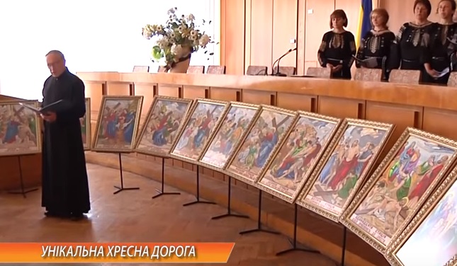 Настоятель церкви Святої Трійці зі села Дзвинячка, о на Тернопільщині, Микола Сус вишив усі стації Хресної дороги. Виставку цієї роботи організували в обласній раді.