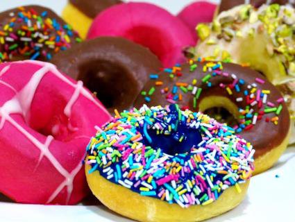 Обов’язково пончики обваляти в цукровій пудрі або покрити кольоровою глазур'ю.
