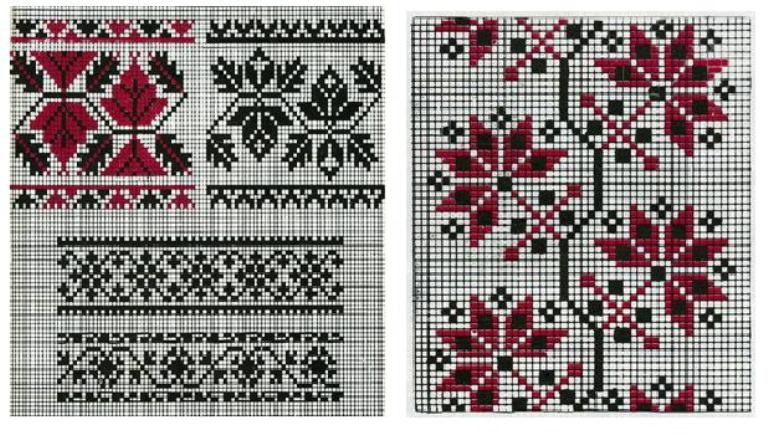 А на наступному візерунку троянди укладені в систему геометричного узору. Це не просто квіти – це квіти-зорі, що уособлюють уявлення народу про Всесвіт як систему. Ви, певне, помітили, що зорі з’єднані ланцюжками. Це також свідчить про непорушний закон об’єднаного космосу.