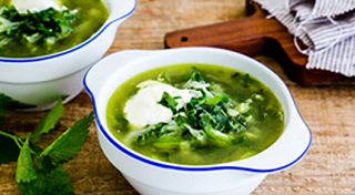 Можна його називати «Зелений борщ», але «веселий» звучить краще і дуже подобається малюкам. На вигляд він і справді веселенький: кольори щавлю, шпинату і моркви створюють враження галявини, на якій сонно клубочаться курчатка. Словом, те, що треба навесні!