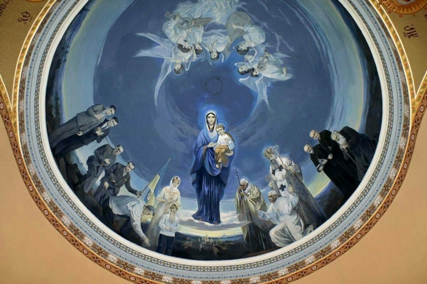 Незвичним у церкві є і намальований епізод хрещення Руси-України. Поряд із княгинею Ольгою і князем Володимиром Великим зобразили і Блаженнішого Святослава Шевчука. А над ними – ангелів-хоронителів Майдану, адже саме в той час, коли художник розмальовував стіну, Україна віддала небу Сотню Героїв.