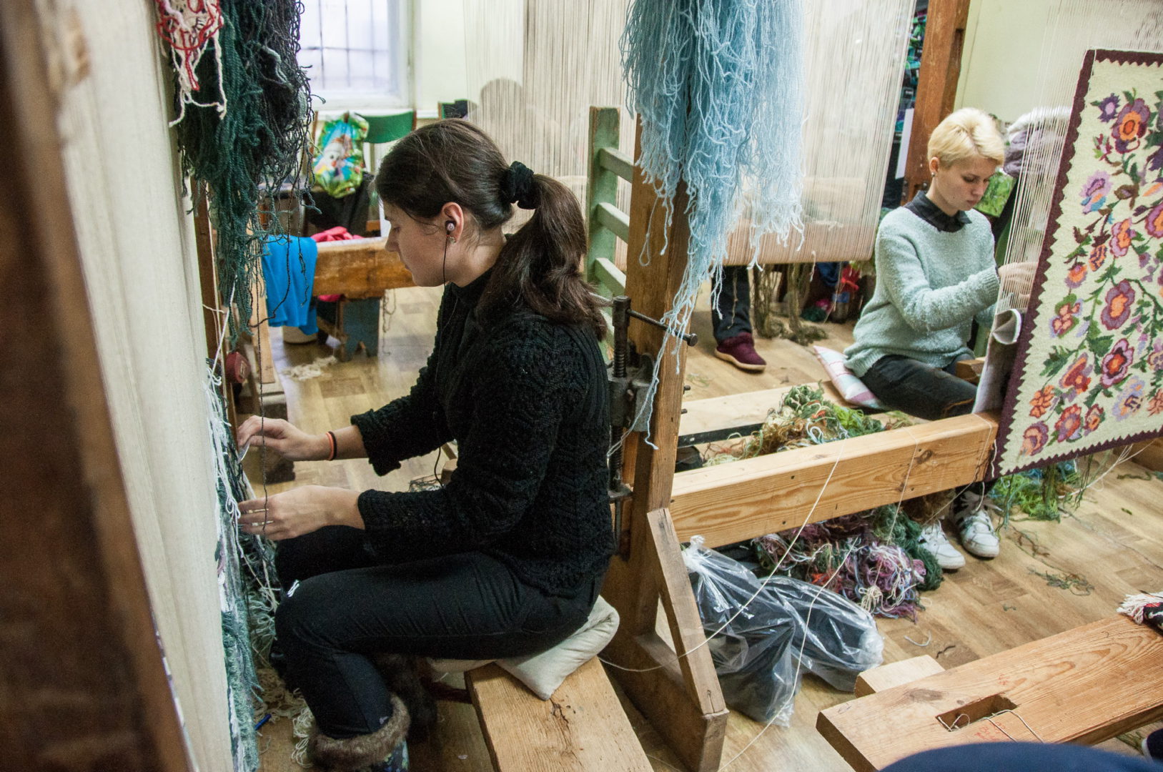 Тоді ж, коли власної якісної вовни було ще вдосталь, килимарство в Решетилівці стрімко розвивалось. Зробити дерев’яний верстат — не важко, саме тому він стояв мало не в кожній хаті, розповідає Ольга. Перемальовували шаблони з фабричних килимів на газети та ткали вдома.