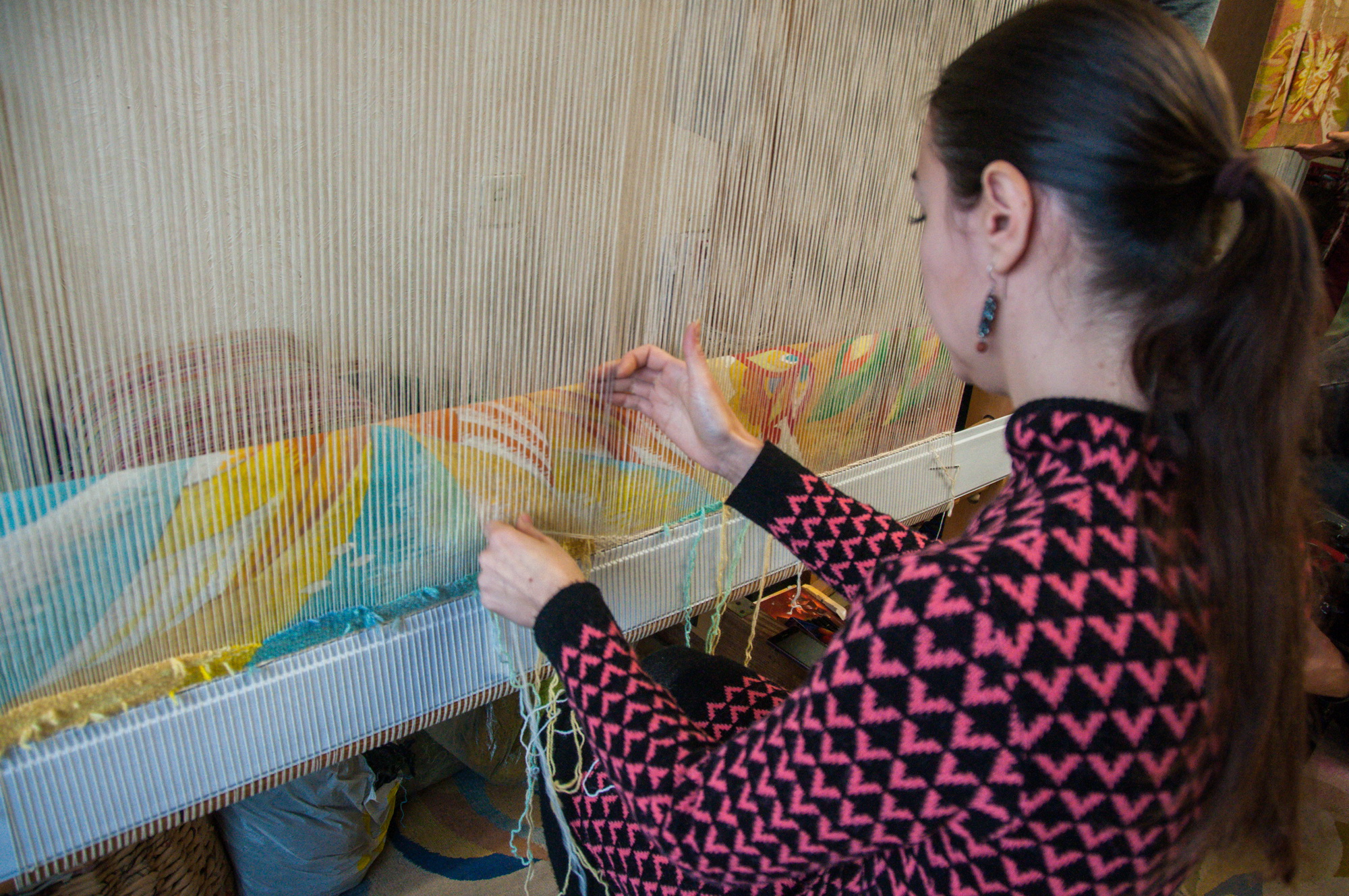 — Фабрична норма — десять сантиметрів витканого полотна за день. Але там просто женуть метраж, не задумуючись про мистецьку сторону. У мене, якщо придивитесь, то кожен шматочок можна розглядати: понад сто відтінків робота може мати.
