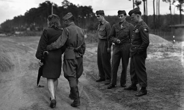 Наші танкісти, піхотинці, артилеристи, зв'язківці нагнали їх, щоб звільнити шлях, поскидали у кювети на узбіччя шосе їх вози з меблями, валізами, чемоданами, конями, відтіснили убік старих і дітей і, забувши про обов'язок та честь, про відступаючі без бою німецькі підрозділи, тисячами накинулися на жінок і дівчаток.