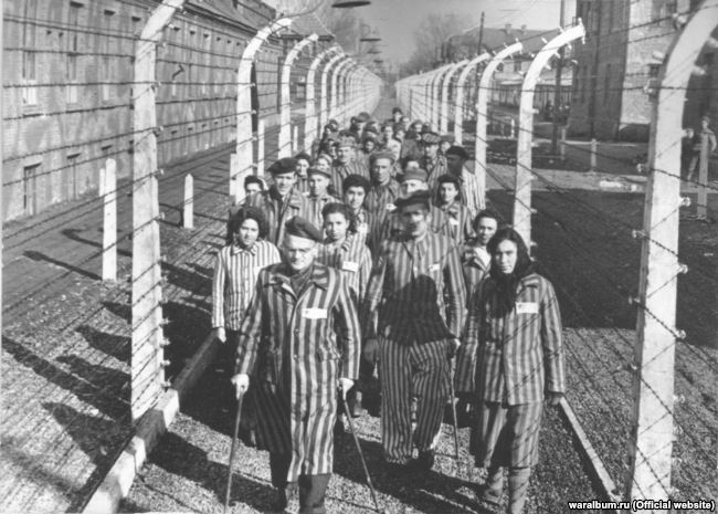 На початку січня 1945 року нас почали евакуйовувати з «Освенцима». Тих, хто залишився живий, вишикували у велику колону – таку, що ні кінця, ні краю – погнали, щоб кудись відвести, бо фронт був уже в Кракові. Нас ведуть, а ми по ліву сторону бачимо, як відбуваються бої, як рвуться снаряди.