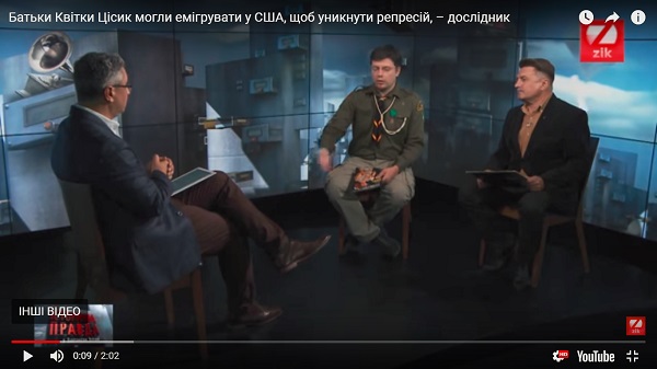 Про це під час ефіру проекту «Історичної правди з Вахтангом Кіпіані» на телеканалі ZIK розповів родич Квітки Цісик та дослідник її біографії Тарас Зень.