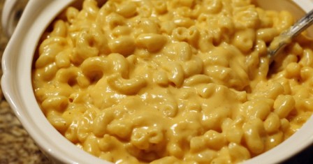 У сковороді розігріваємо олію, додаємо борошно, обсмажуємо до золотистого кольору і повільно вливаємо склянку молока, розмішуючи, доводимо до кипіння, в кінці помішуючи додаємо натертий сир. Додаємо приправи, м’яке вершкове масло (його необхідно заздалегідь дістати з холодильника), перемішуємо. Подаємо гарячим, заливши макарони або можна перемішати макарони в соусі декілька хвилин.