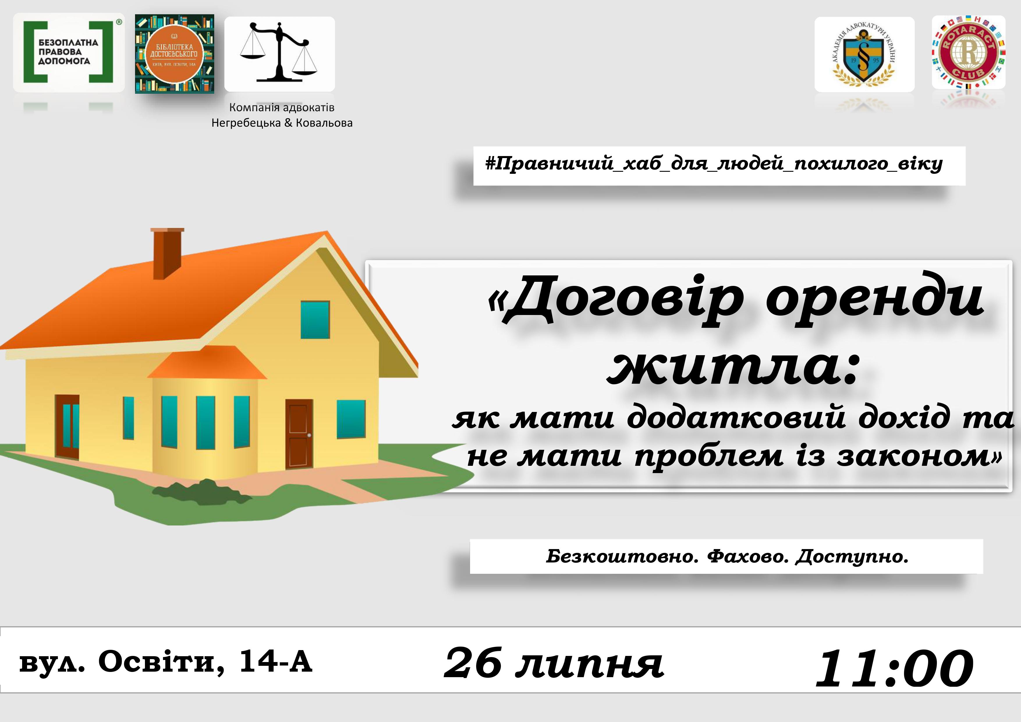 Останні жорсткі зміни до порядку нарахування житлових субсидій призвели до того, що значна кількість людей похилого віку стикаються зі значними витратами на оплату за житлово-комунальні послуги. Тому пенсіонери можуть спробувати отримати додатковий дохід за допомогою здачі в оренду кімнат власного житла. Яким чином укласти такий договір, щоб не опинитися в конфлікті з законом безкоштовно навчать юристи в Правничому хабі для людей похилого віку, який діє на базі Центральної районної бібліотеки імені Ф.М. Достоєвського.