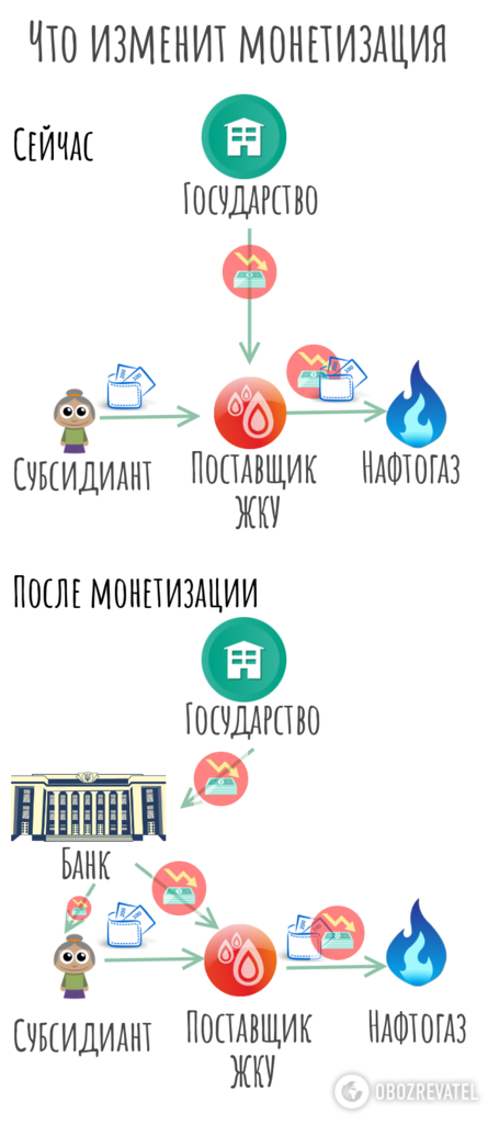 Зараз субсидії з держави отримують підприємства-постачальники комунальних послуг. Після монетизації їх будуть перераховувати на персональні рахунки у фінансовій установі. Але зняти гроші з цього рахунку українці не зможуть. Субсидія — це не допомога з безробіття, яку можна витратити на власний розсуд. Це гроші, які виділяють на допомогу виключно на оплату комунальних послуг.