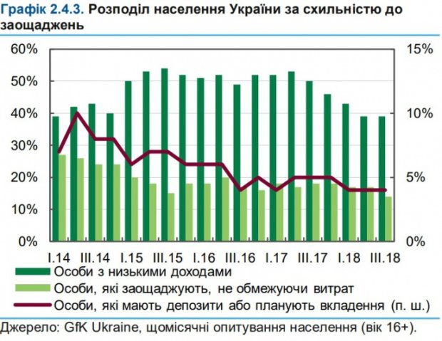 На думку фахівців НБУ, у 2019 році можливе уповільнення реальних доходів населення через нижчі темпи зростання ВВП та жорсткішу фіскальну політику, що обмежуватиме зростання зарплат у бюджетній сфері.