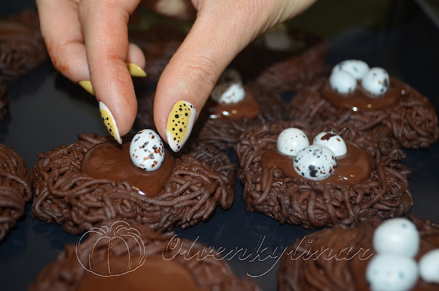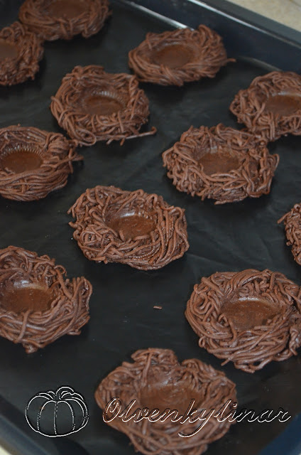 Потім з шоколадного фаршу акуратно формувати гнізда.