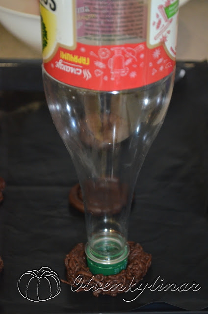 Кришкою від пляшки, для зручності закрутіть її на пляшку, витиснути посередині кожного гнізда заглиблення.