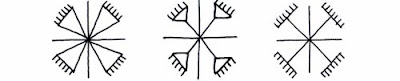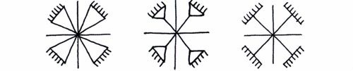 Класичний поділ півсфер на чотири частини, кожна з яких поділена на три, передає уявлення про чотири пори року з трьома місяцями. За іншими уявленнями світ ділився і на шість сторін. Таку просторову орієнтацію передає шестикутна зірка.