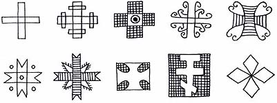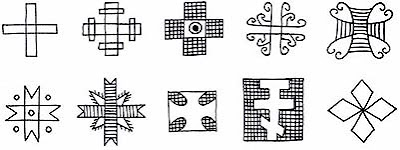 Сонячний знак, стародавній символ сонця, вогню, душі. В орнаменті його називають «божим знаком» і пов'язують з Древом Життя (світовим деревом). Хрест - це перетинання двох ліній: горизонтальної (часу) і вертикальної (вічності) - волі людської з волею Божою. Хрест є водночас і буттям, і небуттям. Для християнина хрест є початком і кінцем, власне життям. Розп'яття стало символом страждання і радісного воскресенія. У християнстві хрест - також символ відкуплення від гріха і смерті.