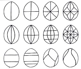 При поділі яйця утворюються поля різної форми і величини. Вони становлять основу для розміщення елементів орнаменту. Кожен із таких знаків прийшов до нас із глибини віків. Закарпатські писанки так само як і українські - це ціла світоглядна система з десятками орнаментальних мотивів. Подаємо основні найпоширеніші накреслення знаків на писанках. Читаючи їх, можна глибше збагнути сенс Великодня.