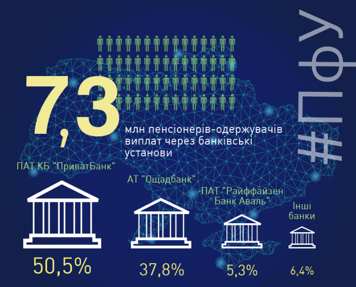 За даними Пенсійного фонду, близько 7,3 мільйона пенсіонерів отримують пенсії через банки.