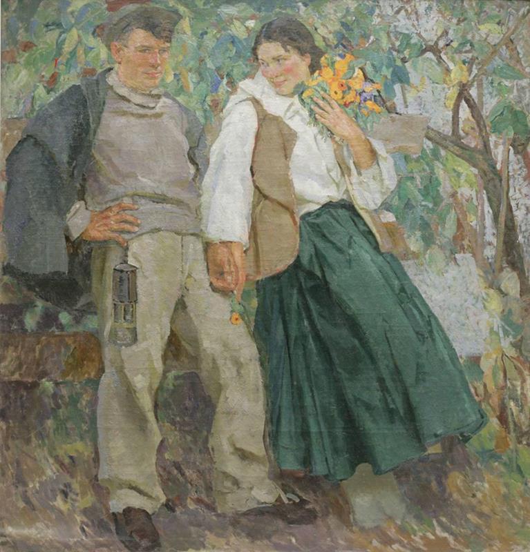 Він не малював комуністичних вождів, хоча часи до цього примушували – вважав, що це нижче за його гідність. А от робітничу тему мусив опрацьовувати, проте його шахтарі й доярки не тягнуть на радянський офіціоз – це просто люди, українці, зі своїми почуттями, в обставинах життя. І на картині «Любов шахтаря» ми бачимо кохання: трохи самовдоволеного хлопця і закохану дівчину, а не прославляння радянського устрою. Жити з дулею в кишені принизливо, але так краще, ніж цілувати пантофлю вождя.