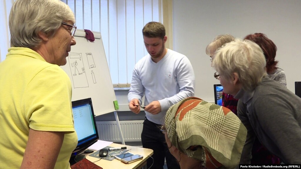 «Курс елементарної комп'ютерної грамотності розрахований на місяць. Студенти займаються двічі-тричі на тиждень. На минулому уроці ми вчилися створювати течки на робочому столі. Тепер ми вчимося діставати інформацію з телефону і переносити її на комп'ютер або на флешку», – розповідає вчитель інформатики Давід Окс.
