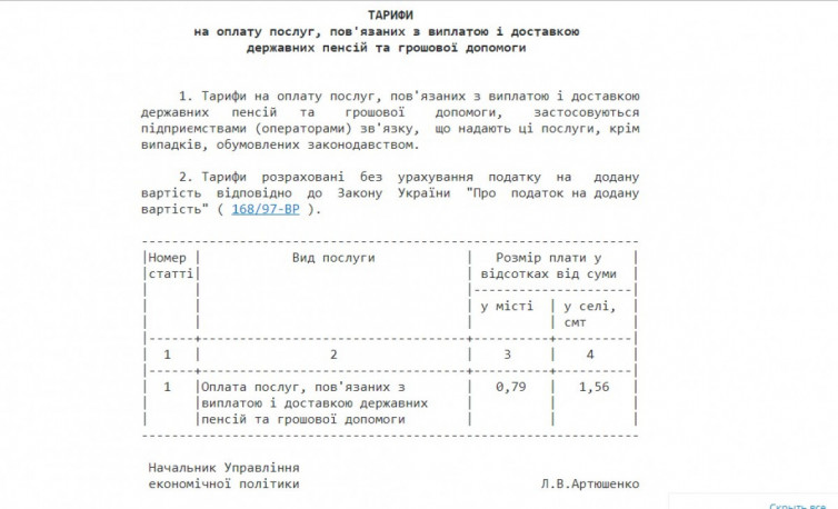 "Укрпошта" погрожує припинити доставку пенсій пенсіонерам, які не мають банківського рахунку, якщо Уряд не ухвалить рішення про підвищення тарифу на доставку до економічно обґрунтованого рівня.