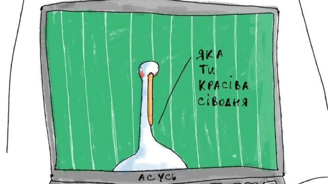У соціальних мережах з'являються персонажі, які говорять суржиком і завойовують серця тисяч фоловерів. Гусь, якого створила ілюстраторка Надія Кушнір, має феноменальну популярність, його дотепні коментарі суржиком на злободенні теми можна читати не лише у постах на фейсбуці, а й на платіжних банківських картках чи навіть на білбордах міста.