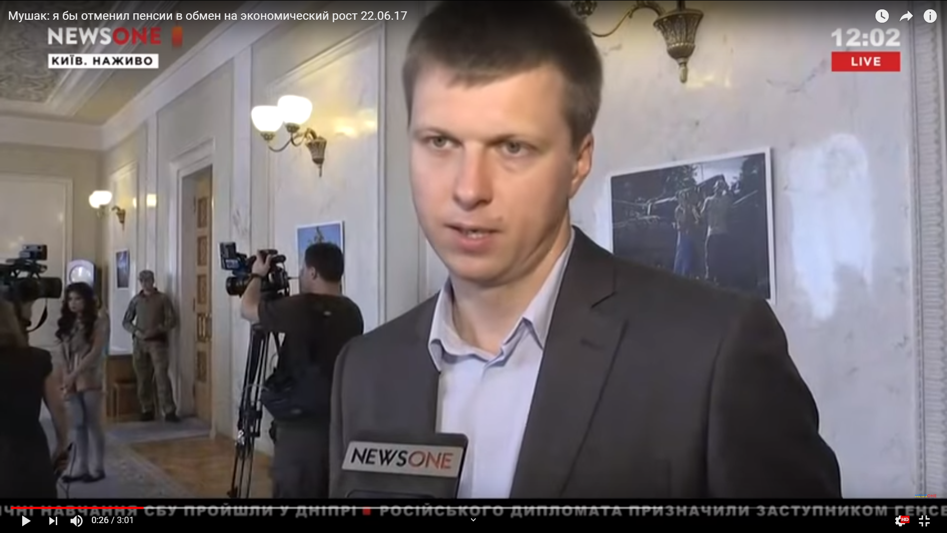 У прямому ефірі NewsOne під час перерви в засіданні Верховної Ради радник прем’єр-міністра з економічних питань Олексій Мушак зробив скандальну заяву з приводу пенсійної реформи.
