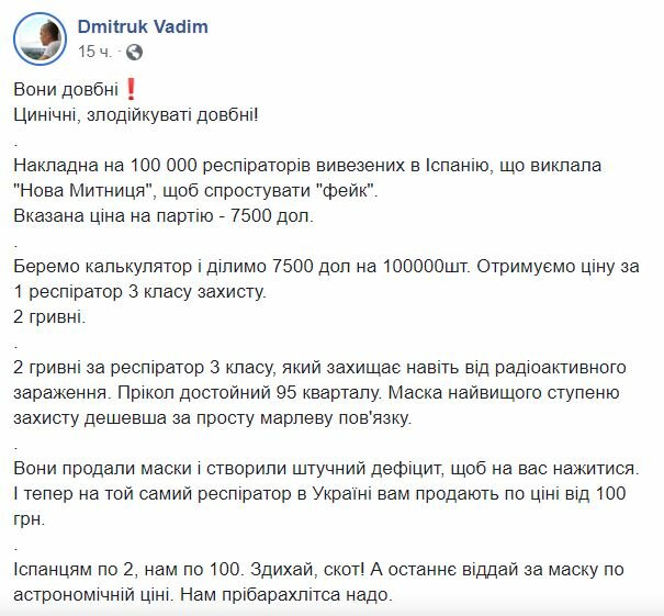 Своє обурення висловив користувач Вадим Дмитрук на своїй сторінці в соціальній мережі Facebook.