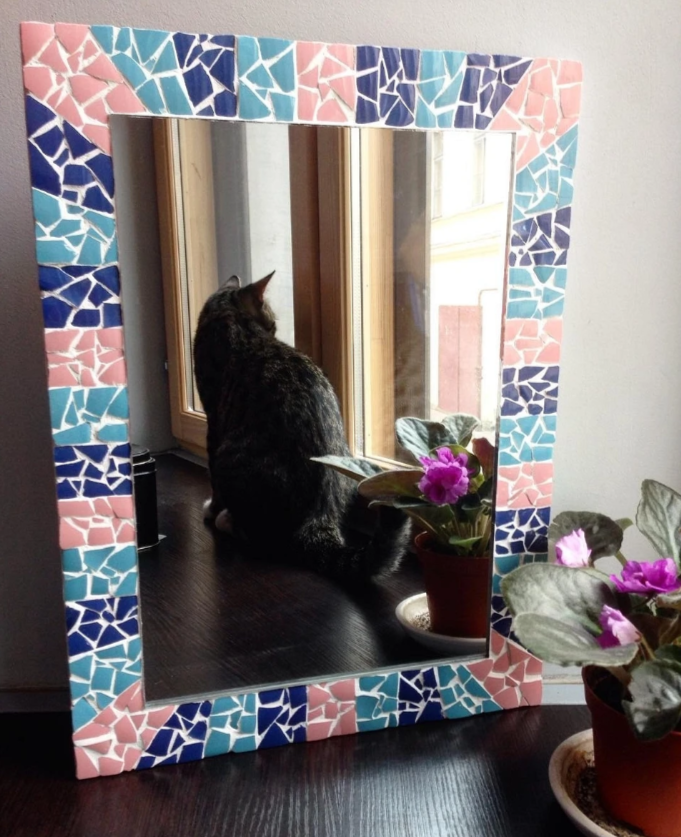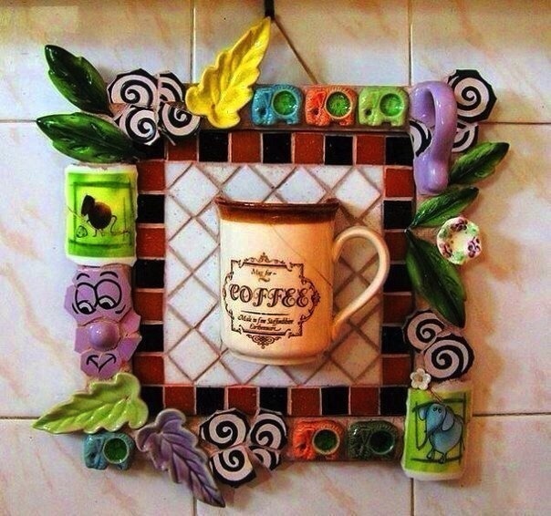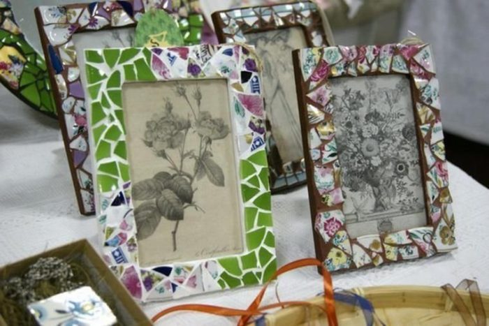 Зібрати шматочки кількох розбитих тарілок і чашок - і створити своїми руками стильну раму для дзеркала і фотографій? Чому б і ні! Можна на викласти з черепків абстрактний візерунок або навіть щось більш складне.