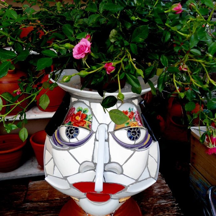 Також зі старого посуду можна спробувати зробити садові вироби, які будуть доповнювати ландшафтний дизайн вашої ділянки біля будинку.