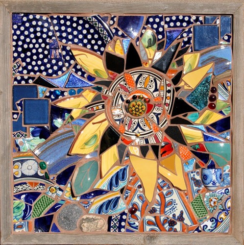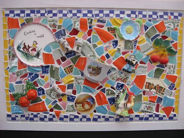 Можна комбінувати матеріали, основу панно можна зробити зі старої плитки, а саму картину з битого посуду.