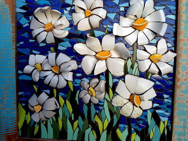 Особливо красиво виглядають картини з використанням опуклих і увігнутих шматочків кухлів, які створюють об'ємність. Так виготовляються картини з букетами квітів.