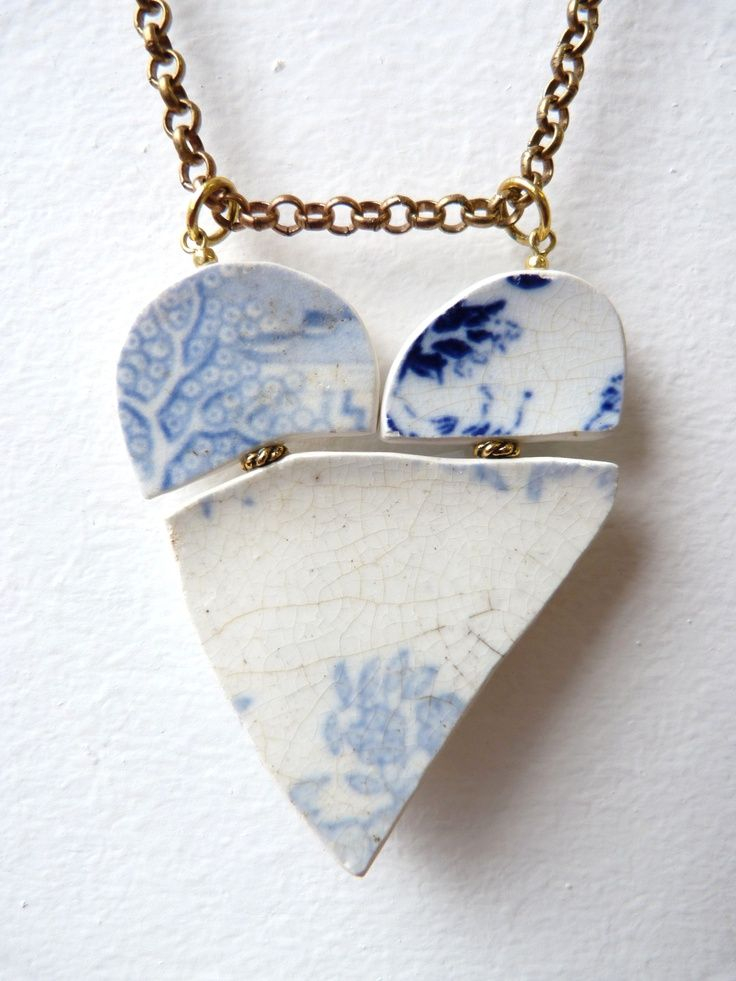 Зі шматочків розбитого посуду можна зробити чудові прикраси! Наприклад, використовуючи їх у якості кабошонів, обплетених бісером та намистинками, або з’єднуючи ювелірним дротом. Оформити кулон можна ланцюжком або тасьмою.