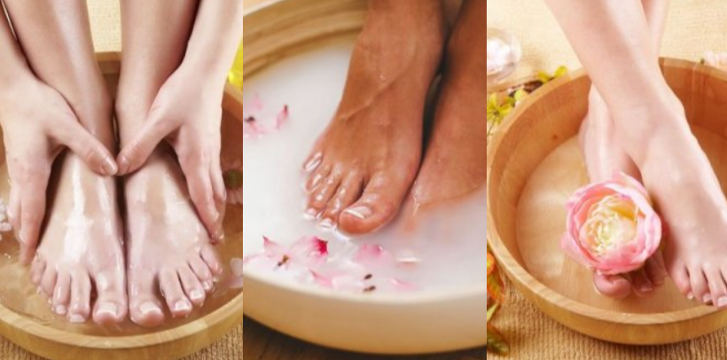 1. Розведіть 2 ст. л. морської солі, 3 ст. л. нашатирного спирту в гарячій воді й опустіть у неї ноги на 15 хв. Шкіра після ванночки стане м’якою і придатною до різних косметичних процедур.
